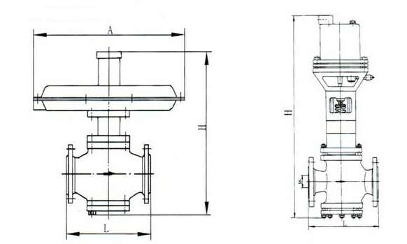 阀体为四通形式,因而K、B型可通用一种阀体。